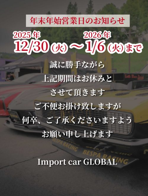 熊本のアメ車はグローバル > スタッフブログ > 2025-2026年末年始営業についてご案内